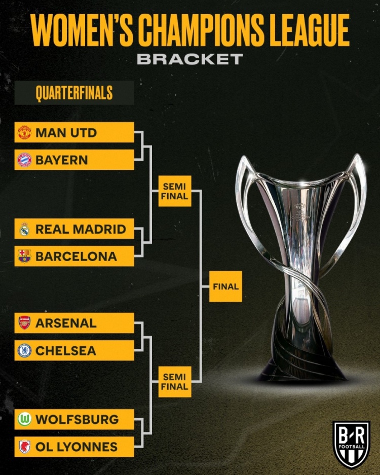女足欧冠8强对阵:皇马vs巴萨、曼联vs拜仁、阿森纳vs切尔西