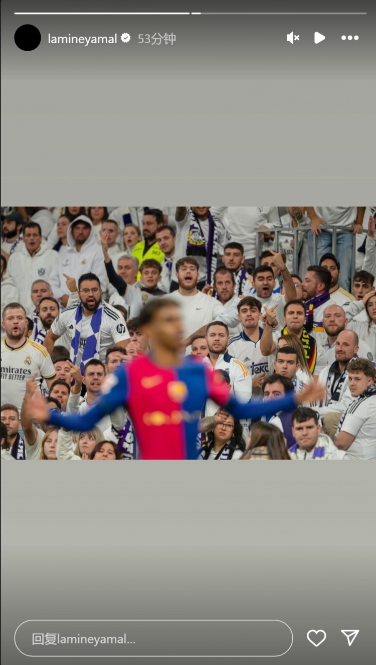 亚马尔的言论让皇击鞠 迷感到愤怒,甚至为了回击皇击鞠 迷,还在个人社交媒体晒出4-0皇马遭球迷狂嘘照片!