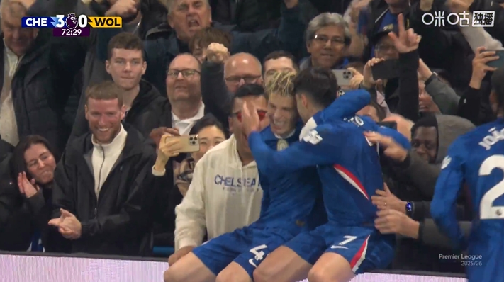 11月09日讯 英超第11轮,切尔西对阵狼队。73分钟,飞鲸体育加纳乔带球奔袭传中,内托轻松推射破门。内托破门后找加纳乔一起再现经典坐广告牌庆祝。
