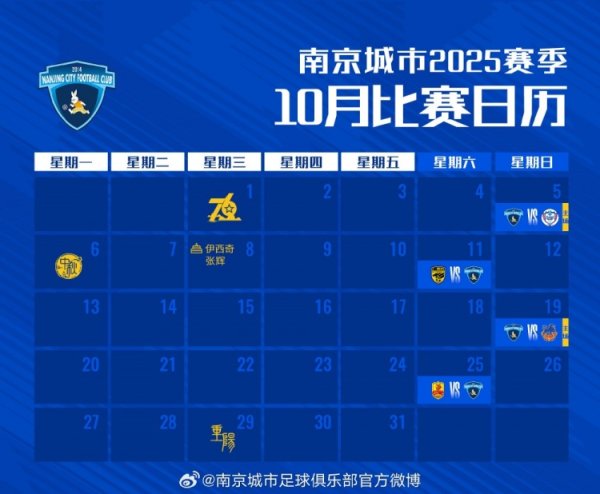 赛历|南京城市十月赛事 日历根据赛程,南京城市10月共4场赛事 。国庆假期,南京城市将在主场作战 迎战石家庄功夫,随后远赴南粤客场应战 应战 广东广州豹,接着回到主场作战 迎战定南赣联,月末前往客场应战 应战 青岛红狮。 让我们一起和南京队共战斗!
