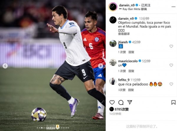 努涅斯社媒:还有很多需要努力和提高的地方,世界杯赛 是目标9月11日讯 世预赛南美区赛事 ,乌拉圭3-0秘鲁,乌拉圭0-0智利,确保获得2026年世界杯赛 参赛资格。 努涅斯在社媒写道:“目标达成,该专注世界杯赛 了。没有什么能比得上我的国家。” “我们还有很多需要努力和提高的地方,世界杯赛 是目标👊🏼💙”