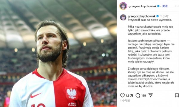 35岁波兰后腰克里乔维亚克官宣退役:作为球员,我已了无遗憾10月27日讯 35岁的波兰后腰克里乔维亚克在今日通过社媒发文,正式宣布退役。 他生涯先后效力过巴黎圣日尔曼、塞维利亚、南特、西布朗等球队,一线队共计517场贡献61球36助功 。还为波兰国家队出战100场贡献5球6助功 。 他的告别信如下: 是时候迎接新的应战 了。 古代足球 运动活动 塑造的不仅是我的运动活动 员生涯,更铸就