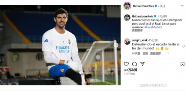 远征阿拉木图!库尔图瓦:从未在欧冠走这么远,准备好迎接明天了9月30日讯 在皇马客战阿拉木图凯拉特的欧冠赛事 前,皇马守门员库尔图瓦发文鼓励了球队。 库尔图瓦写道:“我们从未在欧冠中走得这么远,但现在皇马就在这里。准备好迎接明天了!” 本场赛事 将在北京时间10月1日凌晨0点45分进行。