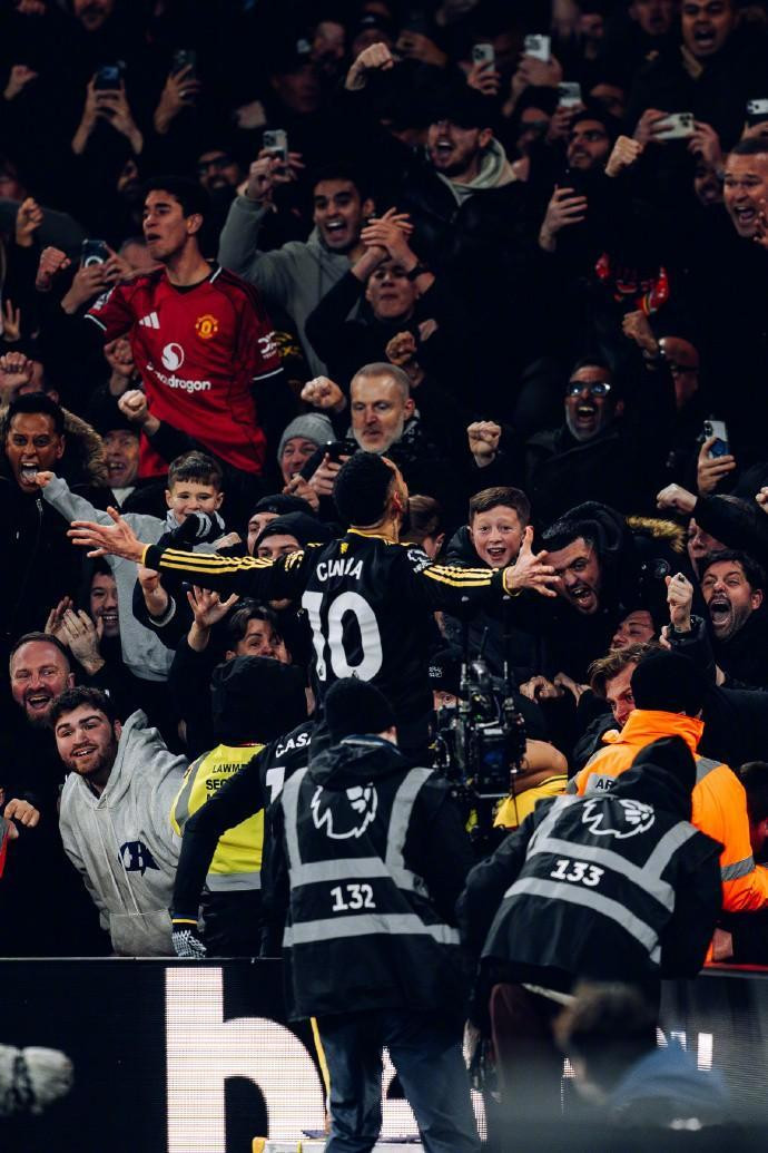 曼联此战过后取得两连胜,升至英超第四,而阿森纳的领跑 优势缩水至4分。