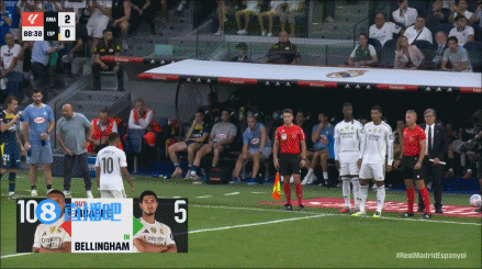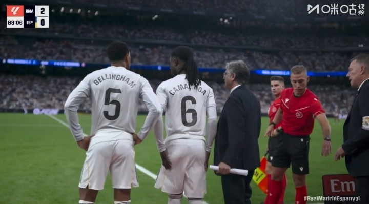 卡马文加上一场为皇马出场是4月24日皇马1-0赫塔费的赛事 ,贝林厄姆上一场为皇马出场是7月10日皇马0-4巴黎的赛事 。