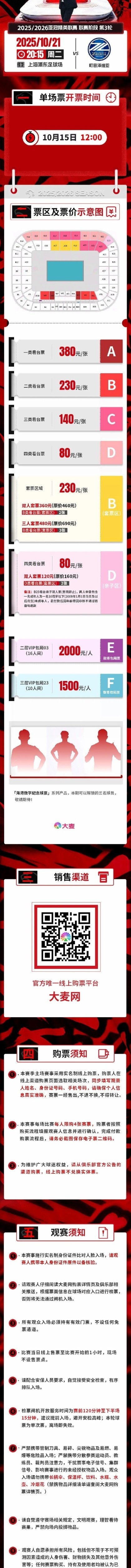 2025/2026亚冠精英职业联赛 第3轮上海海港vs町田泽维亚的赛事 将于10月15日12:00开票~
